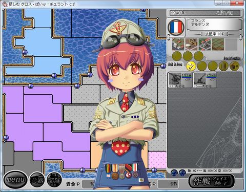 D2中戦車*3、B1戦車*2、105mm榴弾砲*3のかなり有力な部隊がいる為 油断はできない。 南ネーデルラントは空港が無く、アルデンヌの空港も まだ使えないので航空部隊の支援は期待できない。 侵攻 アルデンヌからノルマンディーへ侵攻を開始する。 アルデンヌ→ノルマンディー (3号戦車E型*7、4号戦車D型*6、88mm Flak18*3、150mm砲*4、擲弾兵*26) 空襲 オーヴェルニュからの侵攻に備えるため、アルデンヌを支援する。 ラインラント→アルデンヌ (Bf109E*3 Ju87C*3) 移動 バイエルンのBF110をブランデンブルクへ移動する。 ラインラントの4号戦車D型、150mm砲、擲弾兵*2をアルデンヌへ移動する。 アルデンヌと南ネーデルラントに防衛部隊を残している。 アルデンヌ (3号戦車E型*3、88mm Flak18*3、擲弾兵*2) 南ネーデルラント (4号戦車D型*5、SdKfz10/4*2、150mm砲、擲弾兵*2)